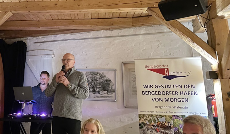 10 Jahre gibt es unseren Verein inzwischen, dies war ein schöner Anlass auf die gemeinsame Zeit zurückzuschauen und das Geschaffene Revue passieren zu lassen. Zudem hat Sebastian Buko für Musik und Unterhaltung gesorgt, die Schnellzeichnerin Christine Grebreyes hat bleibende Erinnerungen mit Ihren Zeichnungen kreiert und Clausen Catering hat für ein tolles Buffet gesorgt. Danke für 10 unvergessliche Jahre für einen noch schöneren Bergedorfer Hafen!