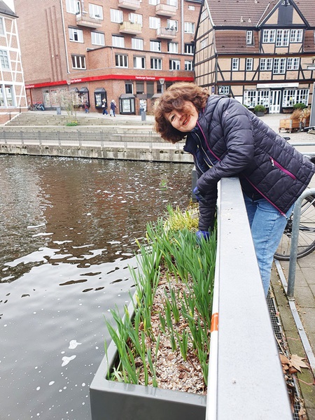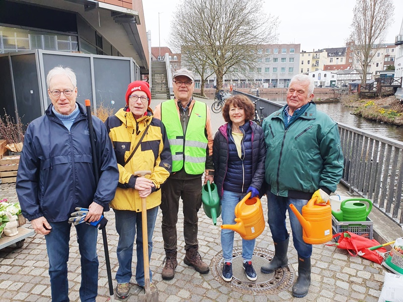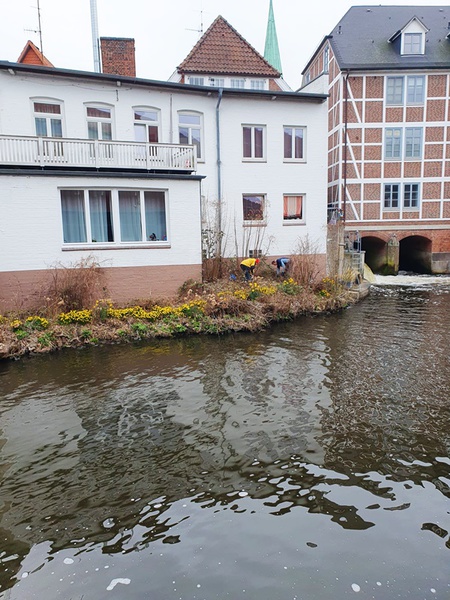 Unsere Truppe der Pflanzpaten trifft sich regelmäßig, um die Beete und unsere Pflanzkästen rund um den Serrahnhafen zu pfelgen und zu begrünen. Diesmal läuteten sie den Frühling ein und brachten nach dem langen Winter alles auf "Vordermann". Das schwer zugängliche Nordufer durfte hierbei nicht fehlen und die damals 1634 gepflanzten Narzissen sind schon gut sichtbar.